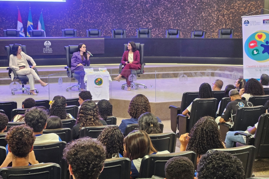 Debate ocorreu nesta segunda (18), no Pleno do TJAL, e contou com a presença das juízas Carolina Valões, Luana Freitas e Priscila Cavalcante...