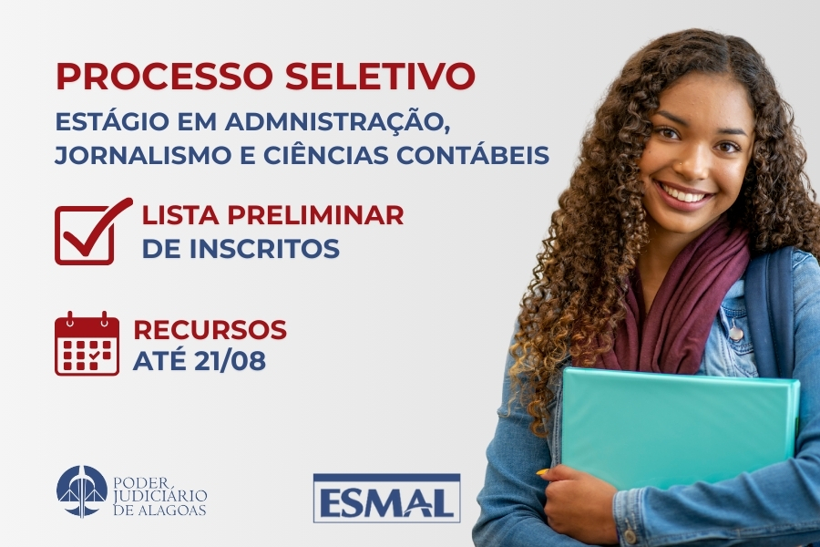 Esmal divulga lista preliminar de inscritos para seleções de estágio no TJAL
