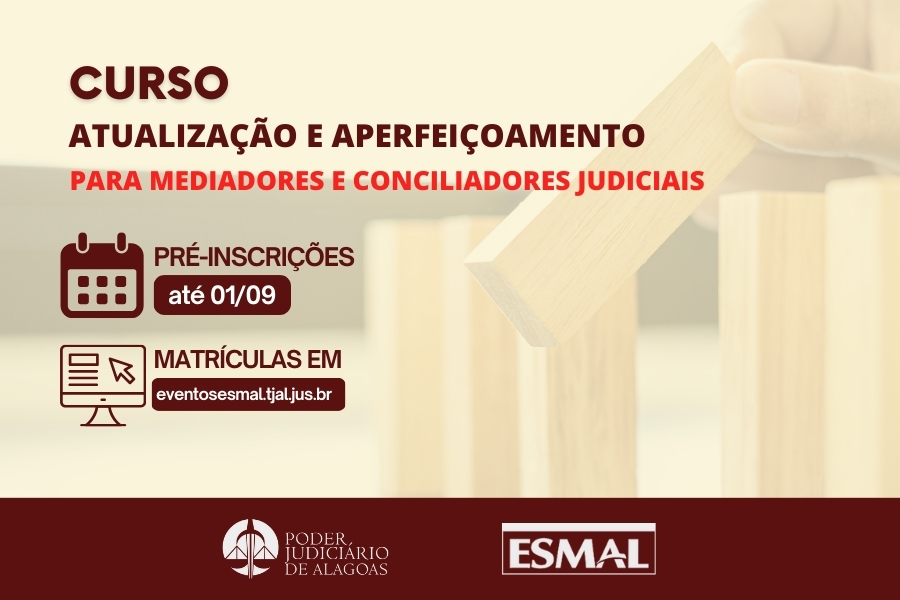 Capacitação é voltada a assessores do 1º e 2º grau; inscrições seguem até 1º de setembro e aulas acontecerão em 4/9 (Maceió) e 5/9 (Arapiraca)...