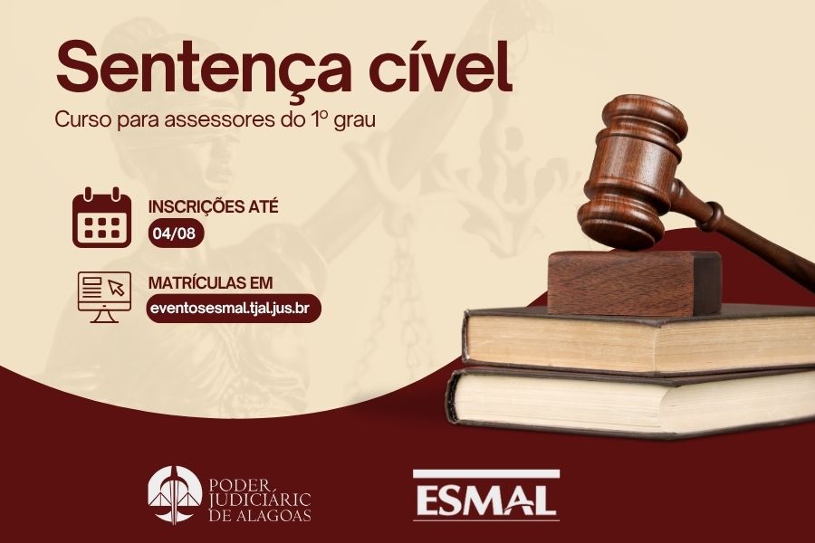 Prazo segue até 4 de agosto; juiz Helestron Costa ministra as aulas teóricas nos dias 7 e 8, na sede da Esmal...