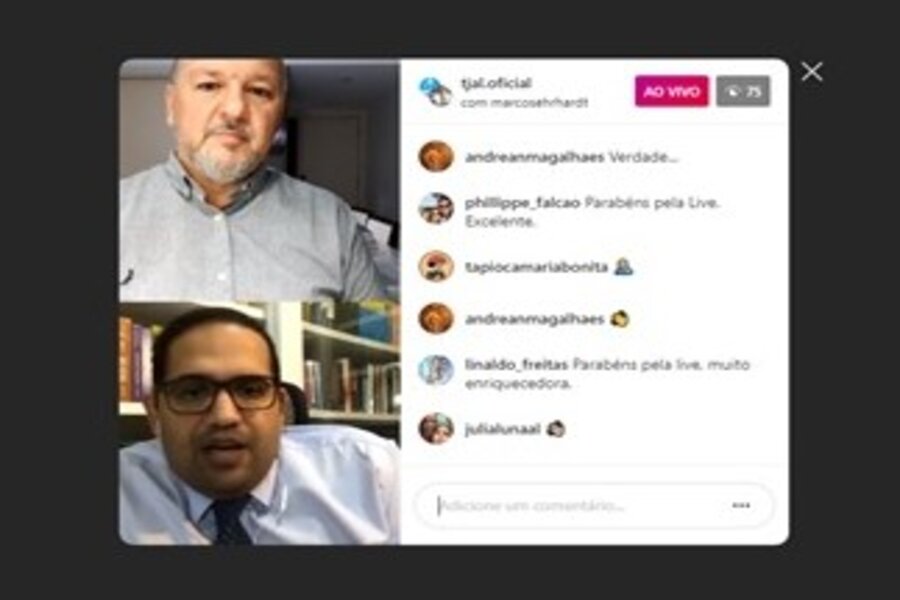 Live no Instagram foi conduzida pelo juiz Gustavo Souza e seu convidado Marcos Ehrhardt, professor da Ufal...