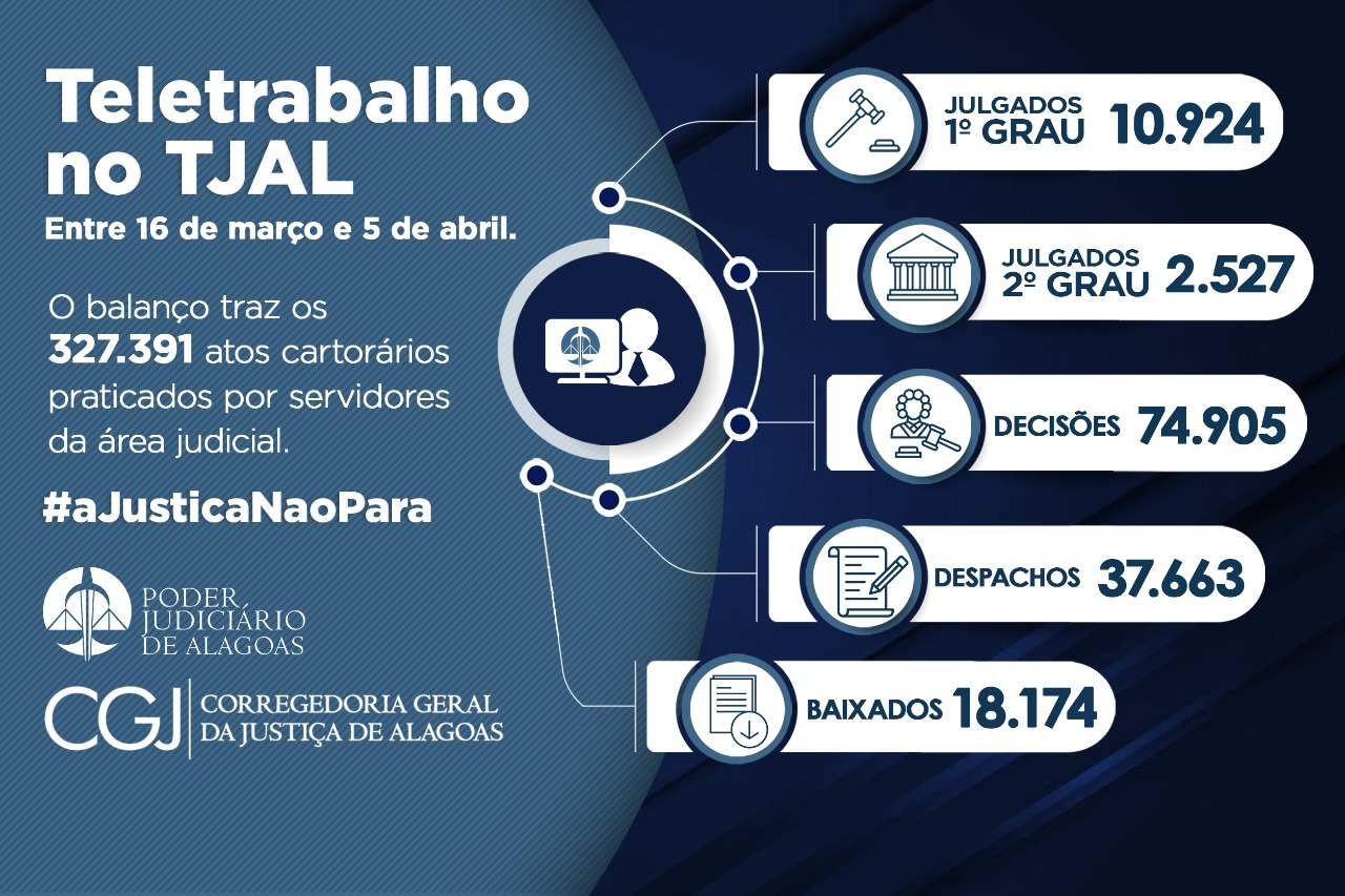 Mais de 471 mil atos processuais em 20 dias de teletrabalho no TJAL