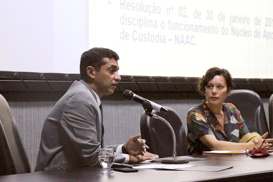 Servidor Everton Silva, membro do Núcleo de Apoio as Audiências de Custódia (NAAC), apresentou estatísticas e tirou dúvidas do público...