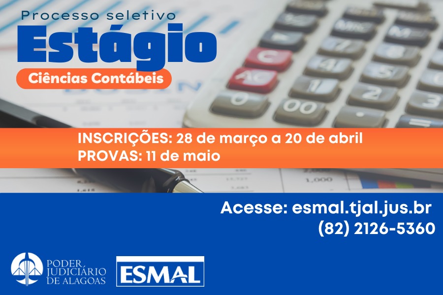 Inscrições podem ser feitas entre 28/03 a 20/04; processo seletivo é conduzido pela Esmal...